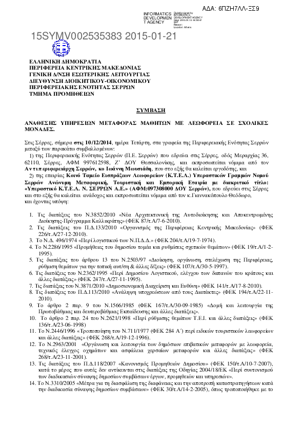 2. ΑΝΑΘΕΣΗ ΥΠΗΡΕΣΙΩΝ ΜΕΤΑΦΟΡΑΣ ΜΑΘΗΤΩΝ ΧΩΡ.ΑΡΜΟΔΙΟΤΗΤΑΣ ΠΕ ΠΙΕΡΙΑΣ 2014-2015