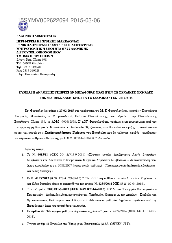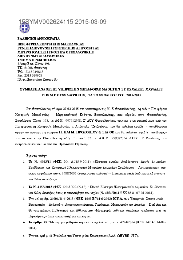 7. ΣΥΜΒΑΣΗ ΜΕΤΑΦΟΡΑΣ ΜΑΘΗΤΩΝ ΣΕ ΣΧΟΛΙΚΕΣ ΜΟΝΑΔΕΣ Μ.Ε. ΘΕΣ/ΝΙΚΗΣ ΓΙΑ ΤΟ ΕΤΟΣ 2014-2015