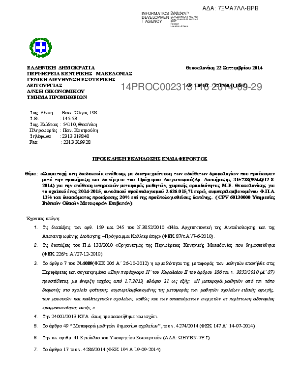 6. ΠΡΟΚΗΡΥΞΗ ΠΡΟΧΕΙΡΟΥ ΔΙΑΓΩΝΙΣΜΟΥΓΙΑ ΜΕΤΑΦΟΡΑ ΜΑΘΗΤΩΝ ΧΩΡ. ΑΡΜΟΔΙΟΤΗΤΑΣ Π.Ε. ΣΕΡΡΩΝ ΣΧΟΛ.ΕΤΟΥΣ 2014-15