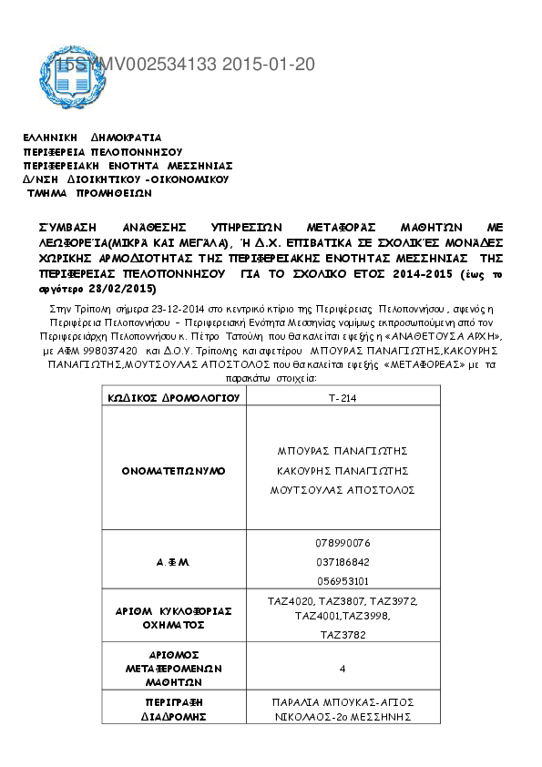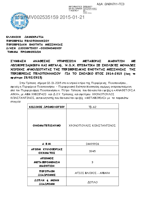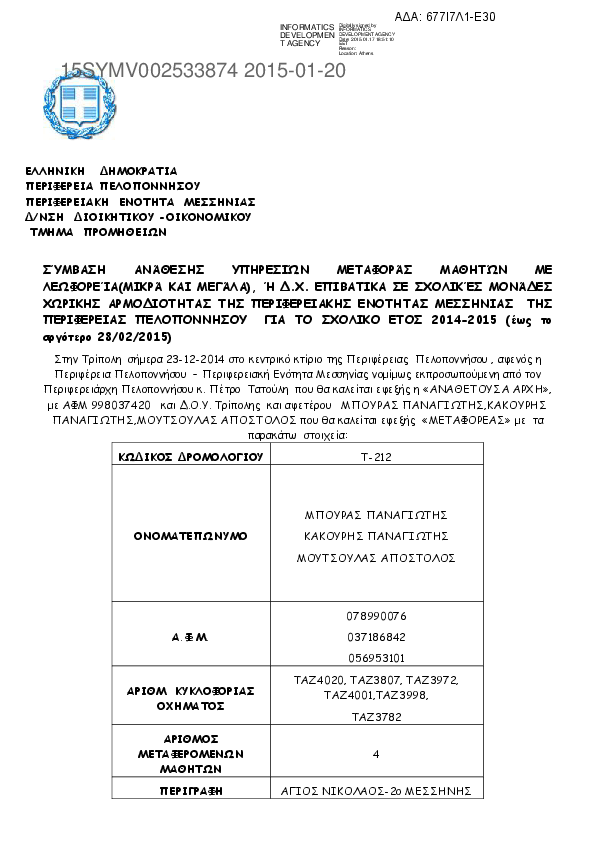 Αναζήτηση σε προκηρύξεις και συμβάσεις για:  «ΑΓΙΟΣ