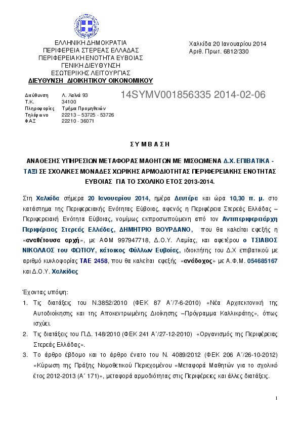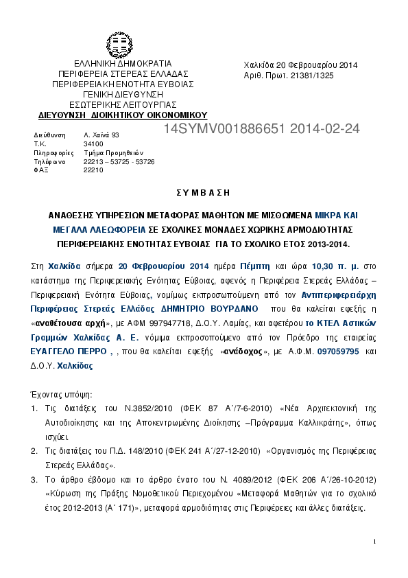 1. ΣΥΜΒΑΣΗ ΑΝΑΘΕΣΗΣ ΥΠΗΡΕΣΙΩΝ ΜΕΤΑΦΟΡΑΣ ΜΑΘΗΤΩΝ ΣΕ ΣΧΟΛΙΚΕΣ ΜΟΝΑΔΕΣ Π.Ε. ΕΥΒΟΙΑΣ