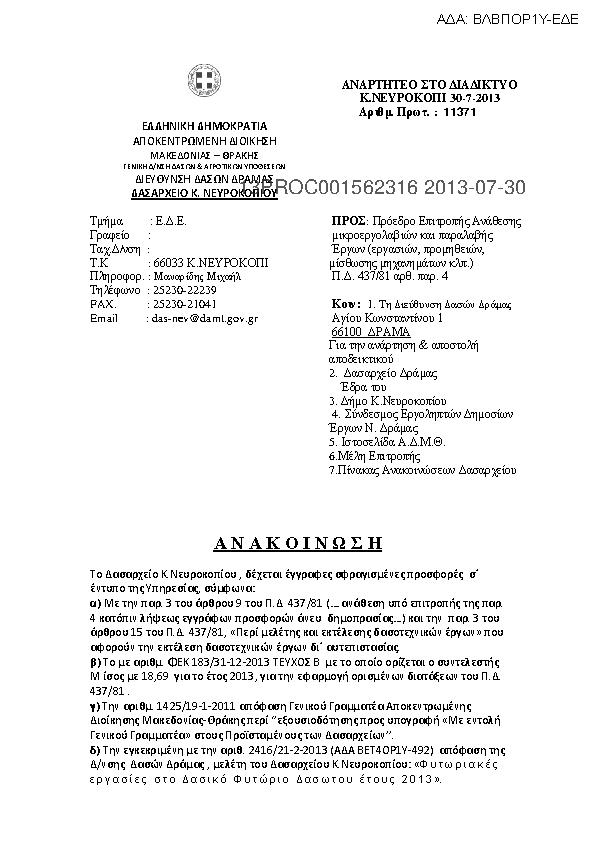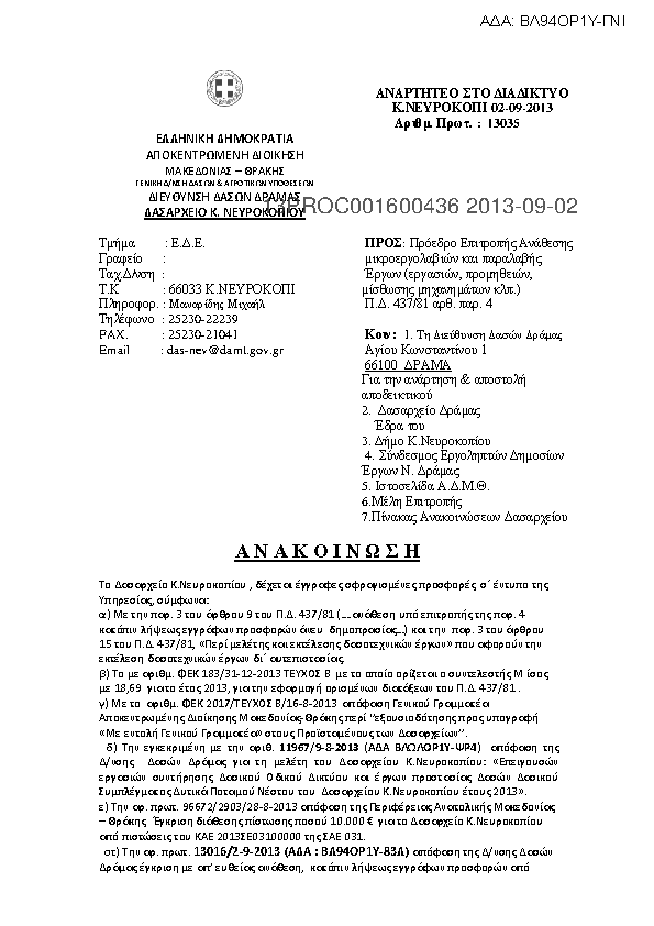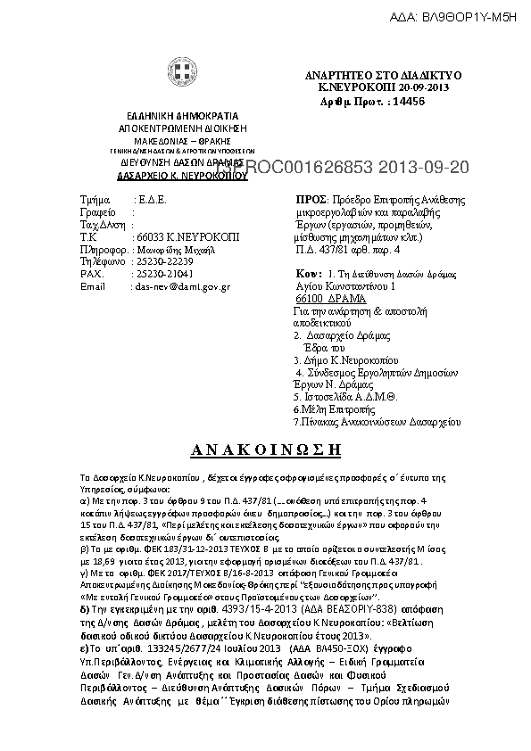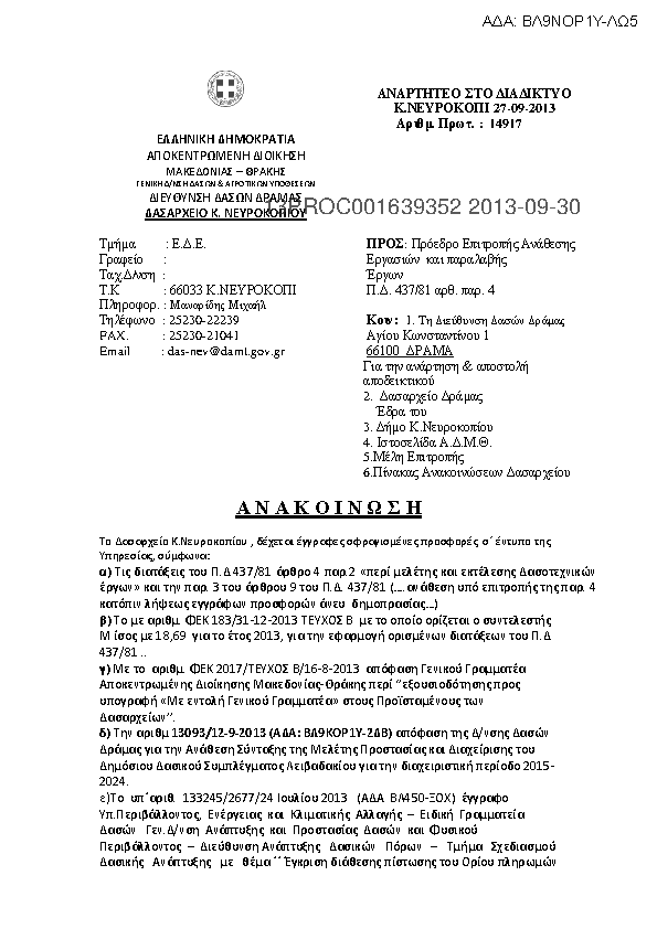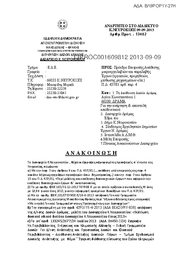 1. Α Ν Α Κ Ο Ι Ν Ω Σ Η Για την Βοηθητική Εργασία Μελέτης