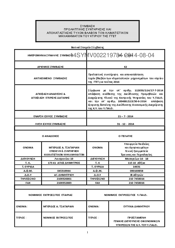 4. ΣΥΜΒΑΣΗ ΠΡΟΛΗΠΤΙΚΗΣ ΣΥΝΤΗΡΗΣΗΣ ΚΑΙ ΑΠΟΚΑΤΑΣΤΑΣΗΣ ΤΥΧΟΝ ΒΛΑΒΩΝ ΤΩΝ ΚΛΙΜΑΤΙΣΤΙΚΩΝ ΜΗΧΑΝΗΜΑΤΩΝ