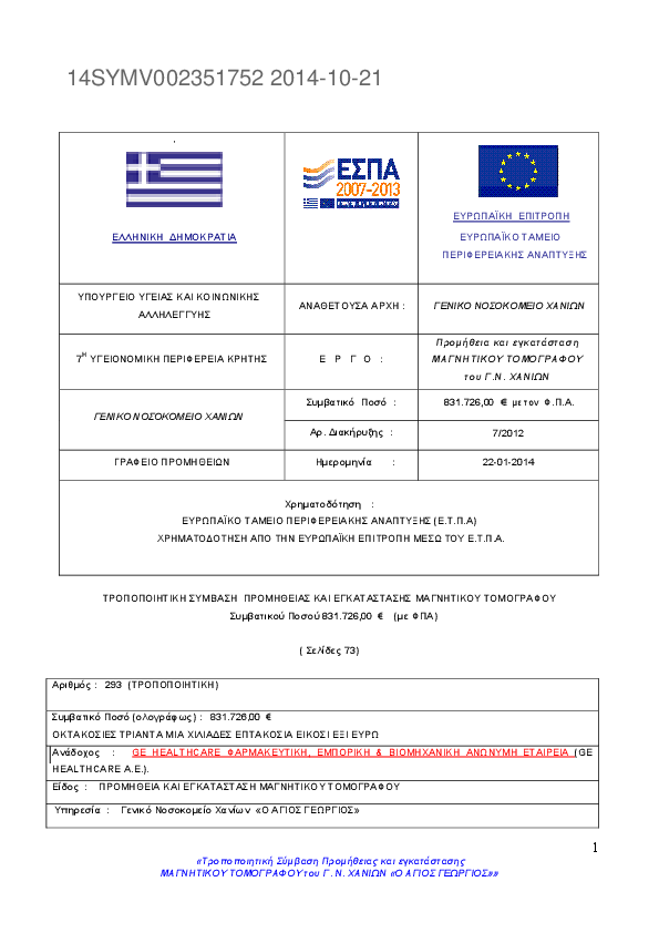 7. Προμήθεια και εγκατάσταση ΜΑΓΝΗΤΙΚΟΥ ΤΟΜΟΓΡΑΦΟΥ του Γ.Ν. ΧΑΝΙΩΝ
