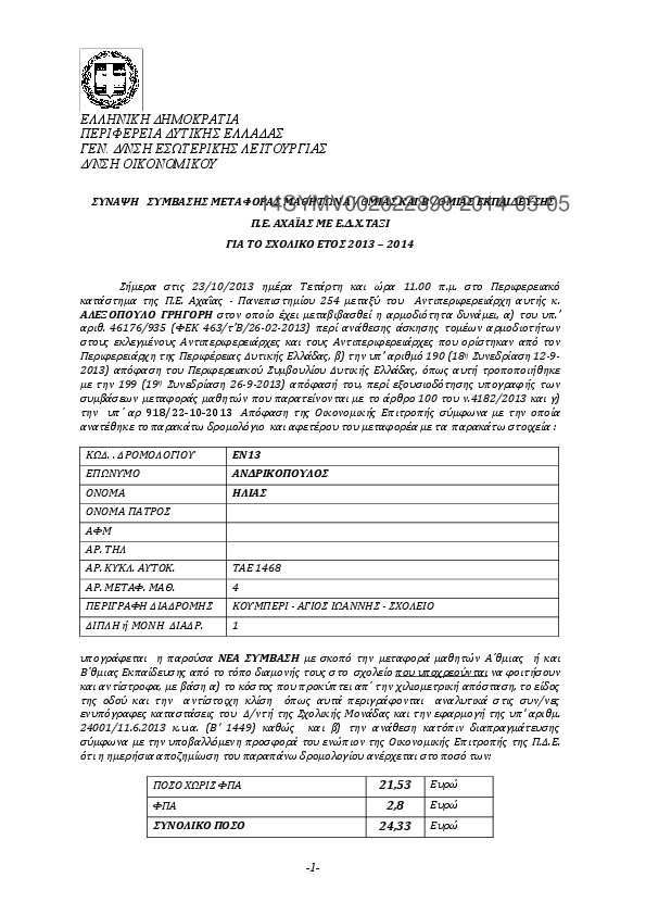1. ΣΥΜΒΑΣΗ ΜΕΤΑΦΟΡΑΣ ΜΑΘΗΤΩΝ ΜΕ ΤΑΞΙ ΕΡΥΜΑΝΘΟΥ