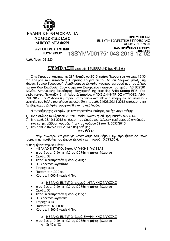 7. ΠΡΟΜΗΘΕΙΑ ΕΝΤΥΠΩΝ ΤΟΥΡΙΣΤΙΚΗΣ ΠΡΟΒΟΛΗΣ ΤΟΥ ΔΗΜΟΥ ΔΕΛΦΩΝ