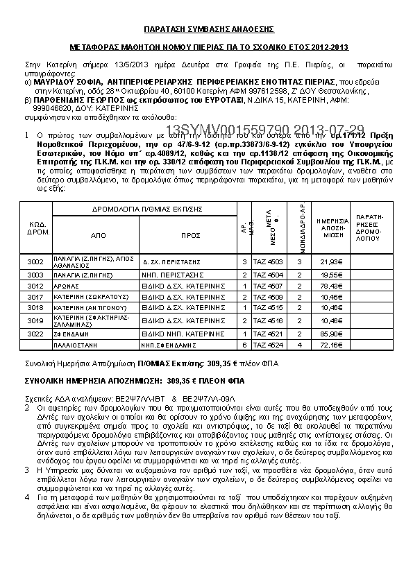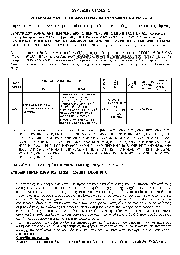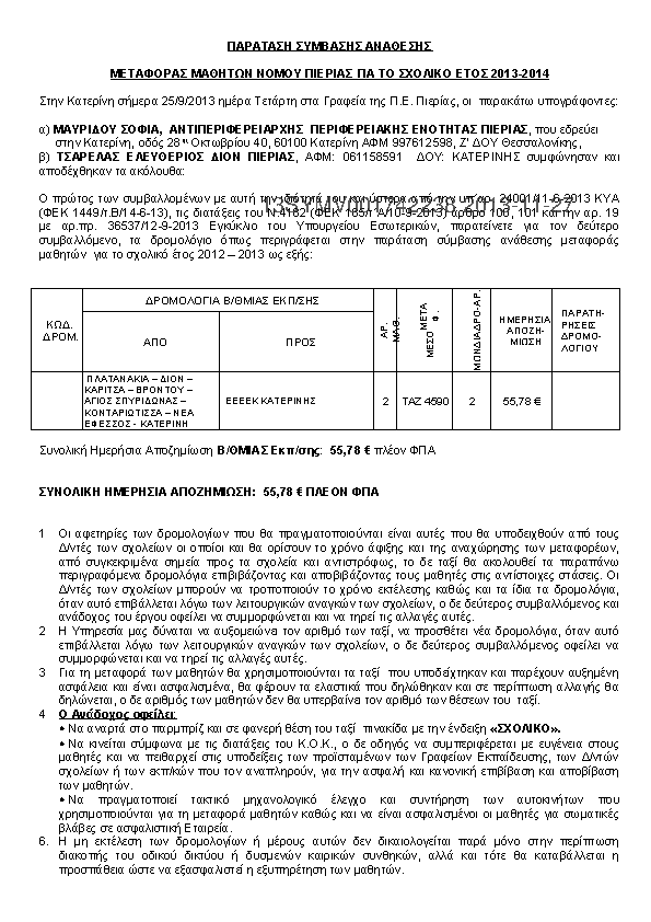 4. ΣΥΜΒΑΣΗΣ ΑΝΑΘΕΣΗΣ ΜΕΤΑΦΟΡΑΣ ΜΑΘΗΤΩΝ ΝΟΜΟΥ ΠΙΕΡΙΑΣ ΓΙΑ ΤΟ ΣΧΟΛΙΚΟ ΕΤΟΣ 2013