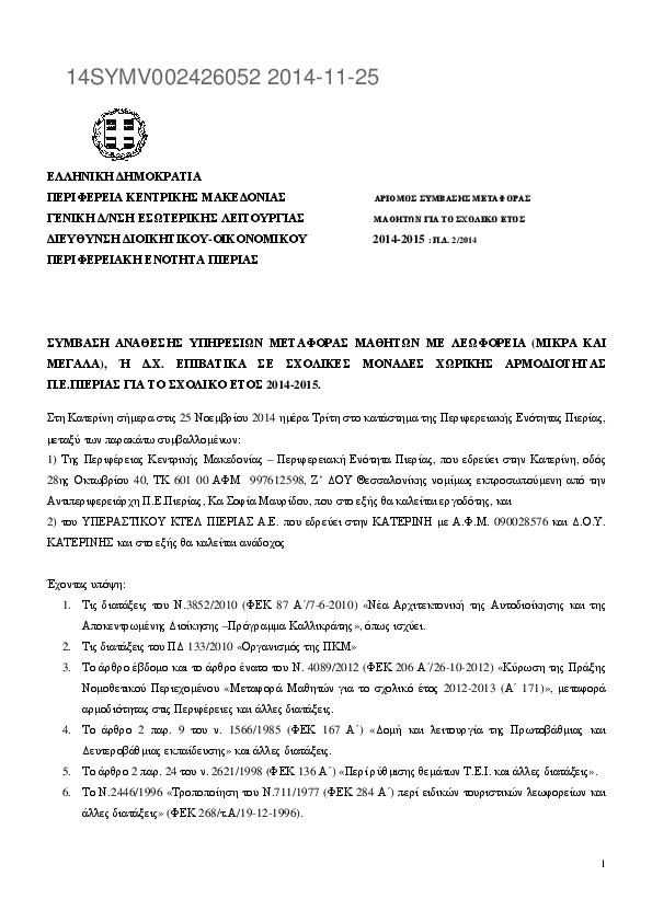 5. ΑΝΑΘΕΣΗ ΥΠΗΡΕΣΙΩΝ ΜΕΤΑΦΟΡΑΣ ΜΑΘΗΤΩΝ ΧΩΡ.ΑΡΜΟΔΙΟΤΗΤΑΣ ΠΕ ΠΙΕΡΙΑΣ 2014-2015