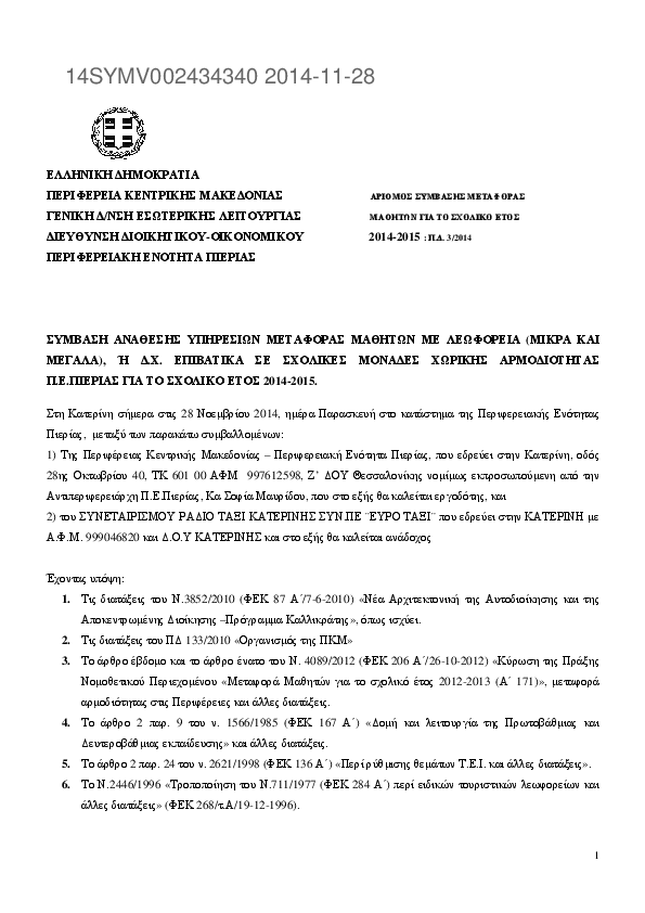 3. ΑΝΑΘΕΣΗ ΥΠΗΡΕΣΙΩΝ ΜΕΤΑΦΟΡΑΣ ΜΑΘΗΤΩΝ ΧΩΡ.ΑΡΜΟΔΙΟΤΗΤΑΣ ΠΕ ΠΙΕΡΙΑΣ 2014-2015