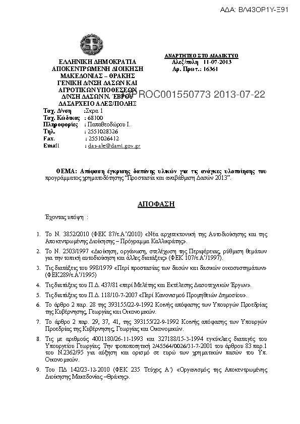 3. ΑΠΟΦΑΣΗ ΑΠΕΥΘΕΙΑΣ ΑΝΑΘΕΣΗΣ ΠΡΟΜΗΘΕΙΑΣ ΥΛΙΚΩΝ