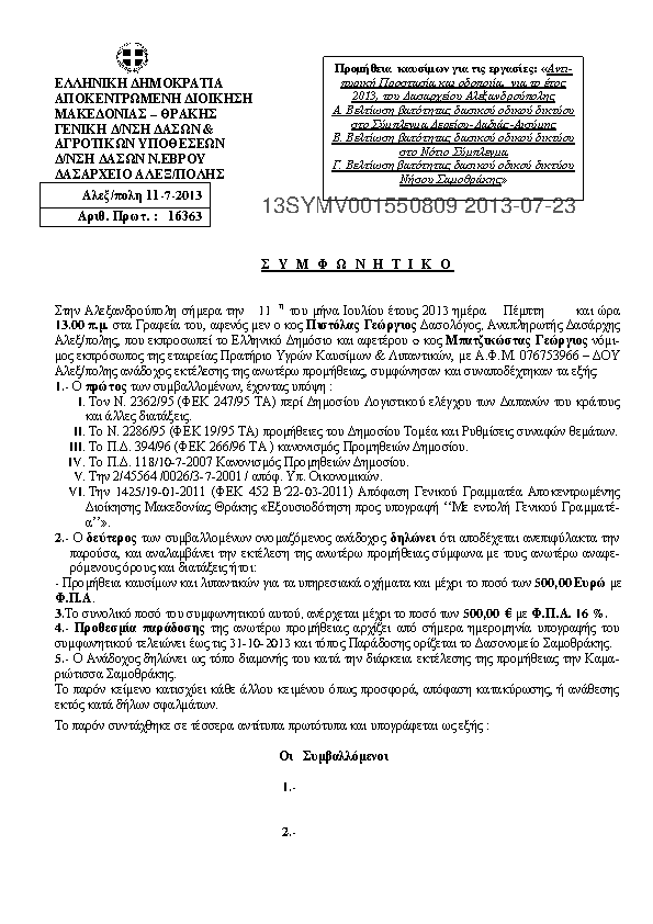 7. ΠΡΟΜΗΘΕΙΑ ΚΑΥΣΙΜΩΝ ΚΑΙ ΛΙΠΑΝΤΙΚΩΝ ΓΙΑ ΤΗ ΣΥΝΤΗΡΗΣΗ ΤΟΥ ΔΑΣΙΚΟΥ ΟΔΙΚΟΥ ΔΙΚΤΥΟΥ