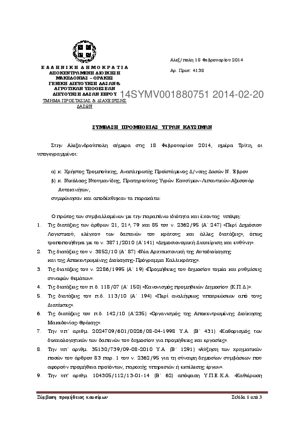 10. Αίτημα για προμήθεια καυσίμων για αντιμετώπιση λαθροϋλοτομιών