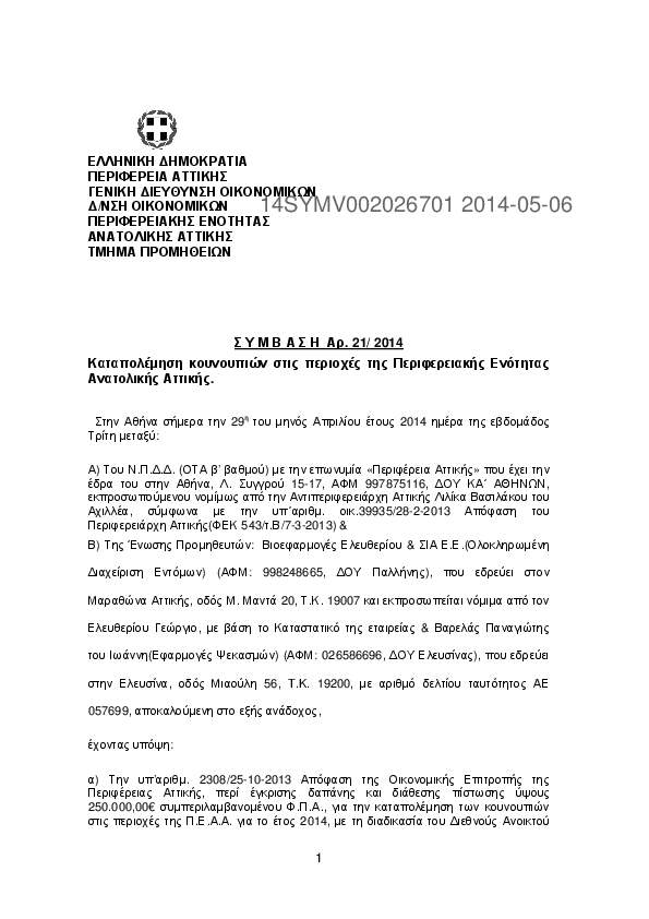 4. ΔΙΑΚΗΡΥΞΗ 8/2014ΔΙΕΘΝΗΣ ΑΝΟΙΚΤΟΣ ΜΕΙΟΔΟΤΙΚΟΣ ΔΙΑΓΩΝΙΣΜΟΣ ΣΕ ΕΥΡΩ ΓΙΑ ΤΗΝ: «Μεταφορά μαθητών Πρωτοβάθμιας και Δευτεροβάθμιας Εκπαίδευσης της Περιφέρειας Αττικής, για τα σχολικά έτη 2014-2015 και 2015-2016».