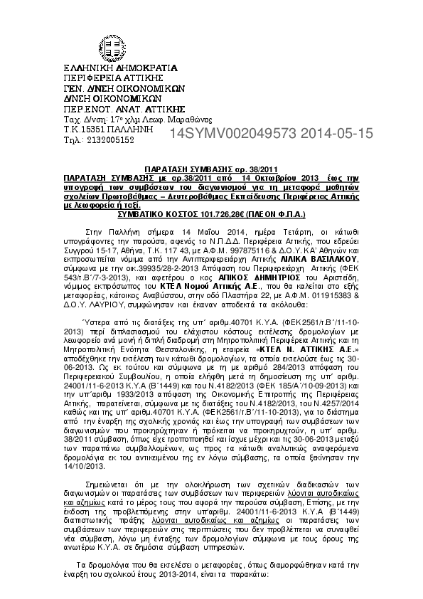1. ΠΑΡΑΤΑΣΗ ΣΥΜΒΑΣΗΣ ΓΙΑ ΜΕΤΑΦΟΡΑ ΜΑΘΗΤΩΝ Α/ΘΜΙΑΣ & Δ/ΒΑΘΜΙΑΣ ΕΚΠΑΙΔΕΥΣΗΣ ΠΕΡΙΦΕΡΕΙΑΣ ΑΤΤΙΚΗΣ