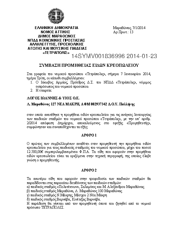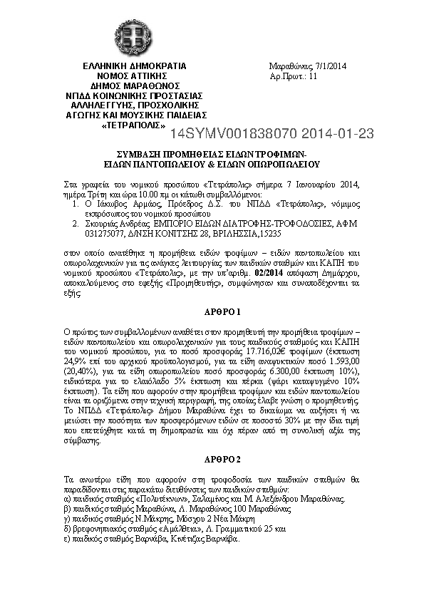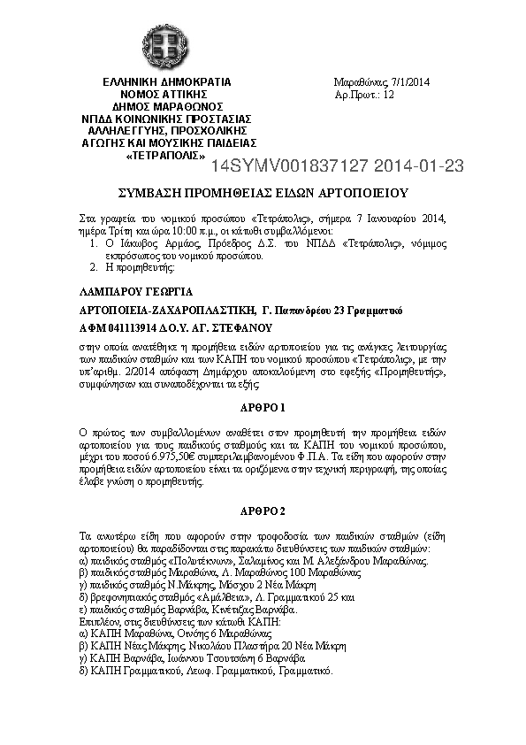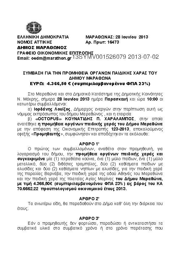 3. ΣΥΜΒΑΣΗ ΓΙΑ ΤΗΝ ΠΡΟΜΗΘΕΙΑ ΟΡΓΑΝΩΝ ΠΑΙΔΙΚΗΣ ΧΑΡΑΣ ΤΟΥ ΔΗΜΟΥ ΜΑΡΑΘΩΝΑ