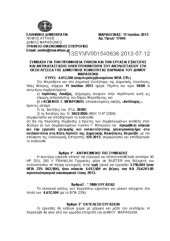7. ΣΥΜΒΑΣΗ ΓΙΑ ΤΗΝ ΠΡΟΜΗΘΕΙΑ ΥΛΙΚΩΝ ΚΑΙ ΤΗΝ ΕΡΓΑΣΙΑ ΕΞΑΓΩΓΗΣ ΚΑΙ ΑΝΤΙΚΑΤΑΣΤΑΣΗΣ ΗΛΕΚΤΡΟΚΙΝΗΤΗΡΑ ΤΟΥ ΑΝΤ