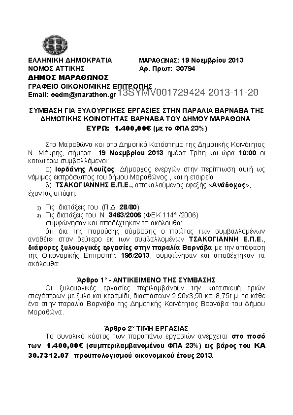 10. ΣΥΜΒΑΣΗ ΓΙΑ ΞΥΛΟΥΡΓΙΚΕΣ ΕΡΓΑΣΙΕΣ ΣΤΗΝ ΠΑΡΑΛΙΑ ΒΑΡΝΑΒΑ ΤΗΣ ΔΗΜΟΤΙΚΗΣ ΚΟΙΝΟΤΗΤΑΣ ΒΑΡΝΑΒΑ ΤΟΥ ΔΗΜΟΥ ΜΑΡ