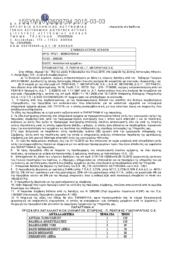 2. Σύμβαση προμήθειας ανταλλακτικών οχημάτων.