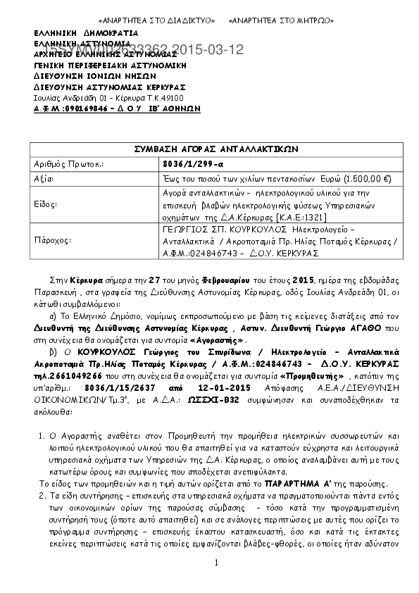 9. Σύμβαση προμήθειας ηλεκτρολογικών ανταλλακτικών οχηματων της Δ.Α.Κέρκυρας