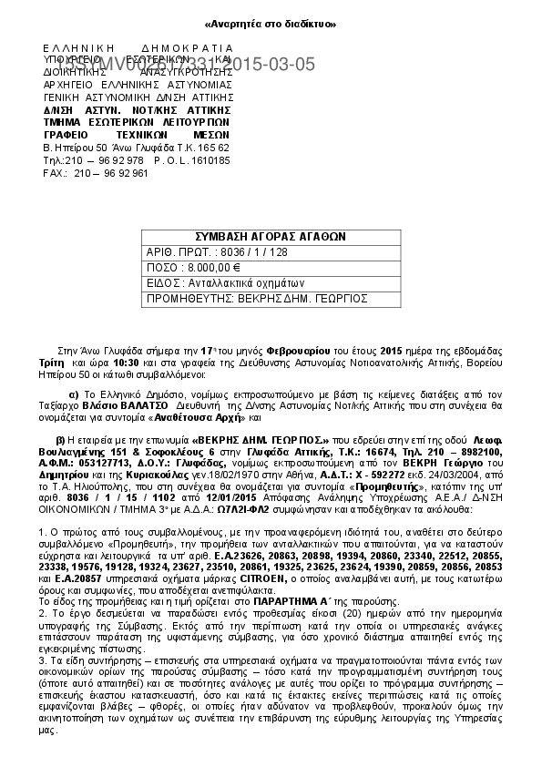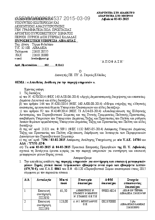 1. ΣΥΜΒΑΣΗ ΠΡΟΜΗΘΕΙΑΣ ΕΛΑΣΤΙΚΩΝ ΕΠΙΣΩΤΡΩΝ ΥΠΗΡΕΣΙΑΚΩΝ ΟΧΗΜΑΤΩΝ Δ.Α.ΜΑΓΝΗΣΙΑΣ,ΕΤΟΥΣ 2015.