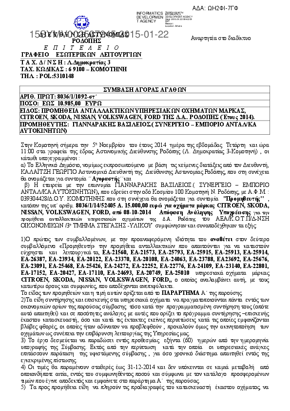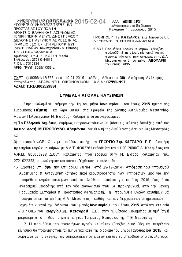 9. ΣΥΜΒΑΣΗ ΑΓΟΡΑΣ ΚΑΥΣΙΜΩΝ ΔΑ ΜΕΣΣΗΝΙΑΣ ΚΑΤΑ ΤΟΝ ΜΗΝΑ ΙΑΝΟΥΑΡΙΟ 2015