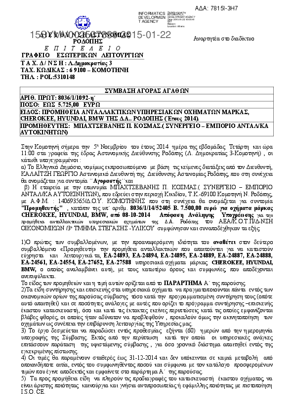 5. ΠΡΟΜΗΘΕΙΑ ΑΝΤΑΛΛΑΚΤΙΚΩΝ ΥΠΗΡΕΣΙΑΚΩΝ ΟΧΗΜΑΤΩΝ ΤΗΣ Δ.Α. ΡΟΔΟΠΗΣ