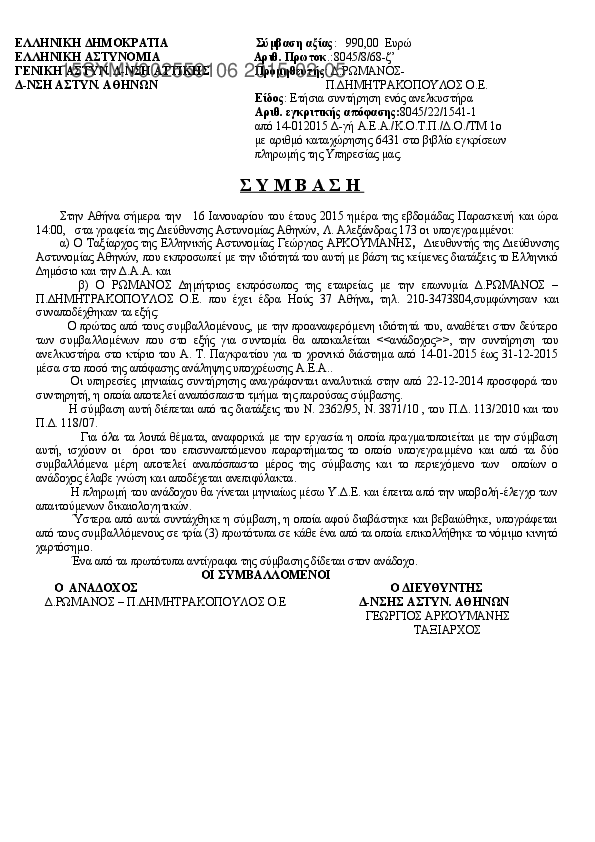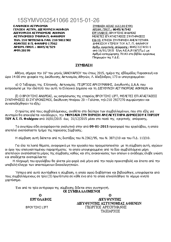 6. ΣΥΜΒΑΣΗ ΓΙΑ ΤΗ ΜΗΝΙΑΙΑ ΣΥΝΤΗΡΗΣΗ ΑΝΕΛΚΥΣΤΗΡΑ ΓΙΑ ΤΟ Α.Τ.Π.ΦΑΛΗΡΟΥ