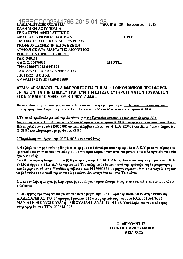 7. ΟΙΚΟΝΟΜΙΚΕΣ ΠΡΟΣΦΟΡΕΣ ΓΙΑ ΤΙΣ ΕΡΓΑΣΙΕΣ ΕΠΙΣΚΕΥΗΣ ΚΑΙ ΣΥΝΤΗΡΗΣΗΣ ΤΟΥΑΛΕΤΩΝ 5ου ΚΑΙ 6ου ΟΡΟΦΟΥ