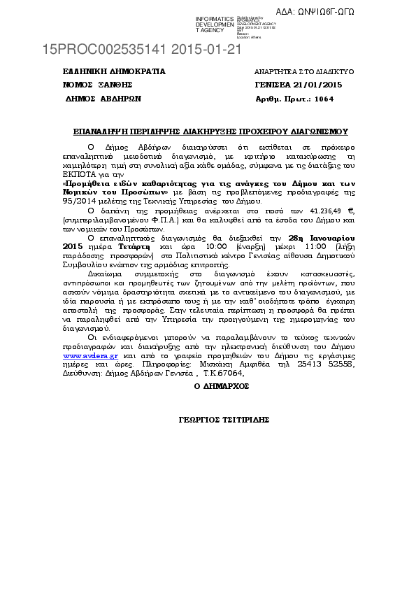 Αναζήτηση σε προκηρύξεις και συμβάσεις για:  ΓΕΩΡΓΙΟΣ