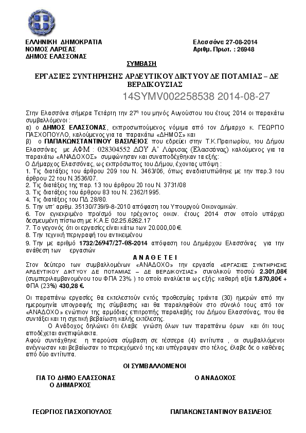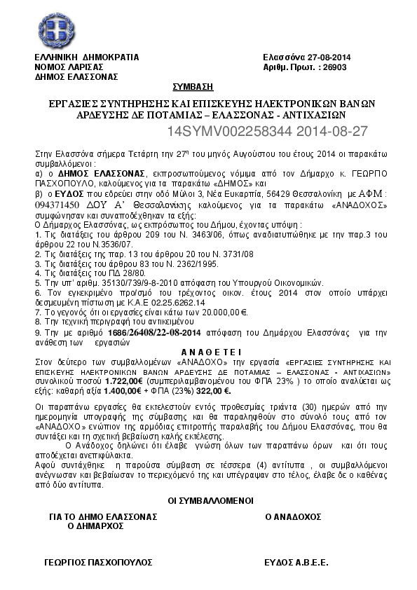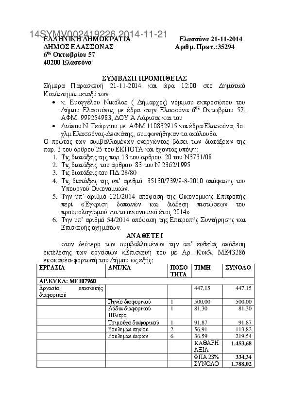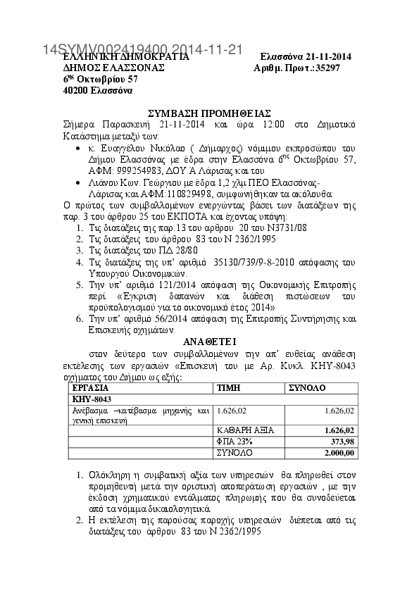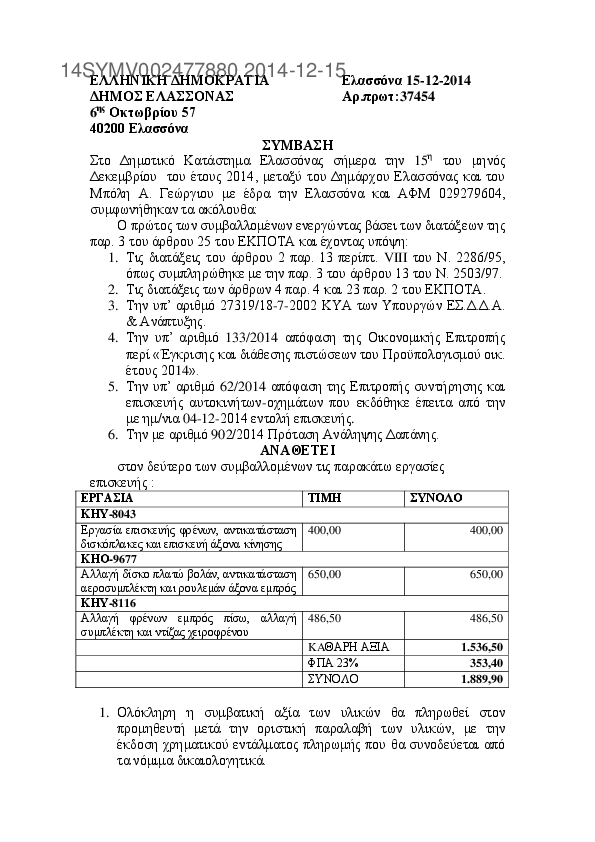 7. ΣΥΜΒΑΣΗ ΜΕ ΛΙΑΝΟ Ν. ΓΕΩΡΓΙΟ ΓΙΑ ΕΠΙΣΚΕΥΗ ΟΧΗΜΑΤΟΣ
