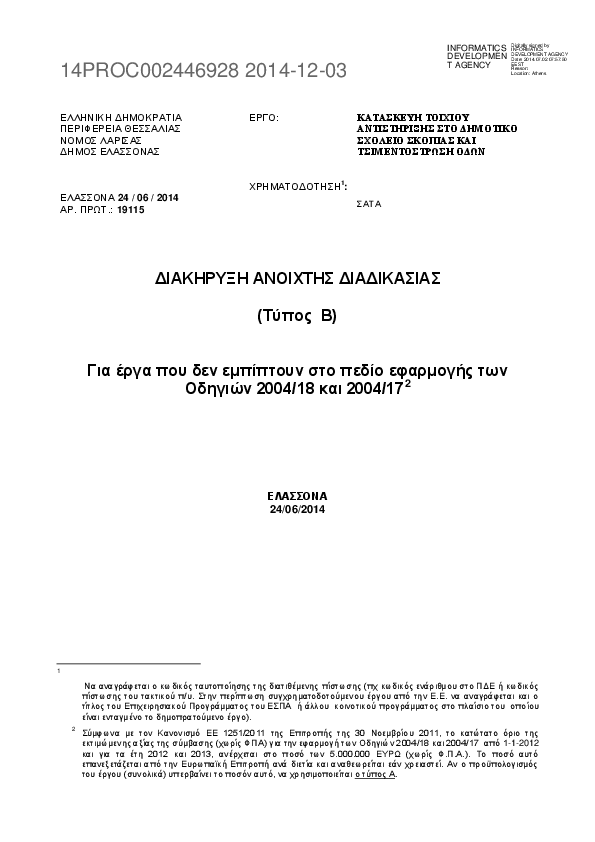 Αναζήτηση σε προκηρύξεις και συμβάσεις για: