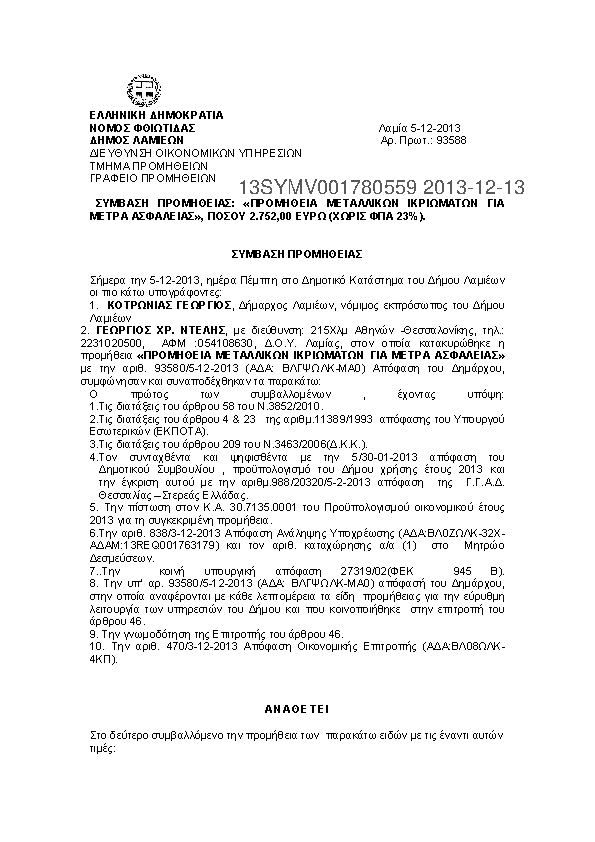 1. ΠΡΟΜΗΘΕΙΑ ΜΕΤΑΛΛΙΚΩΝ ΙΚΡΙΩΜΑΤΩΝ ΓΙΑ ΜΕΤΡΑ ΑΣΦΑΛΕΙΑΣ