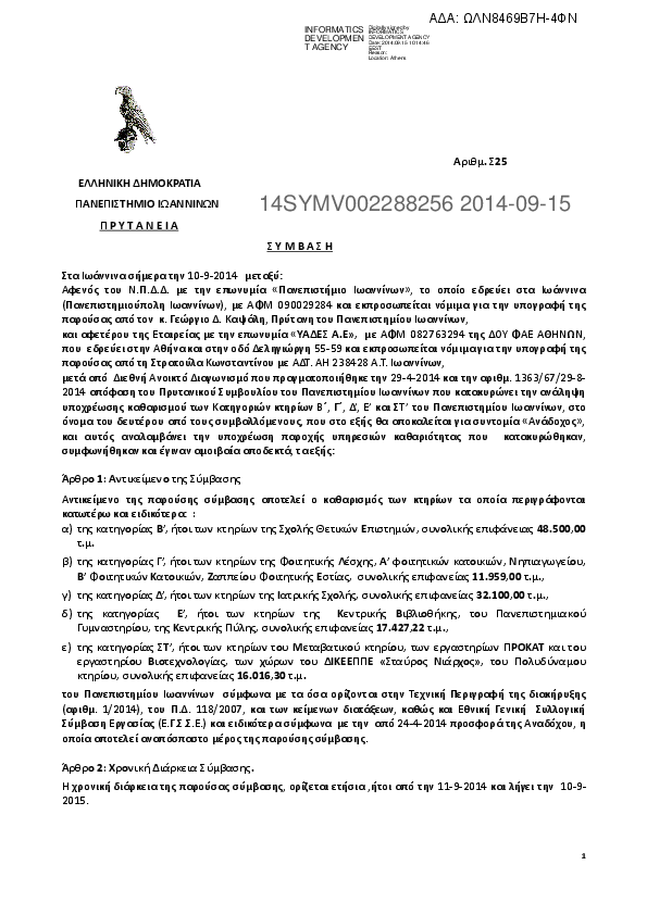 3. Καθαρισμός των κτηρίων της κατηγορίας Α΄ του Πανεπιστημίου Ιωαννίνων