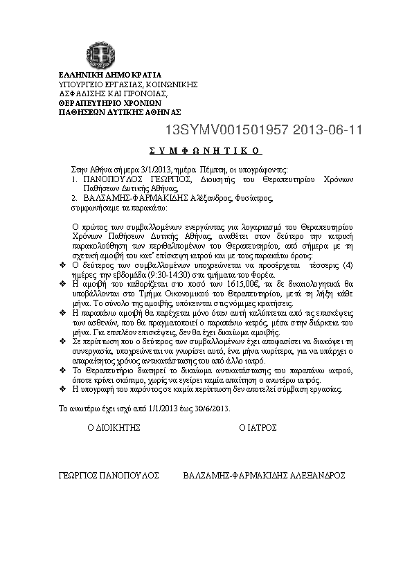 1. ΙΔΙΩΤΙΚΟ ΣΥΜΦΩΝΗΤΙΚΟ ΠΑΡΟΧΗΣ ΙΑΤΡΙΚΩΝ ΥΠΗΡΕΣΙΩΝ ΠΡΟΣ ΤΟ ΘΧΠΔΑ