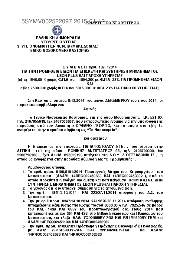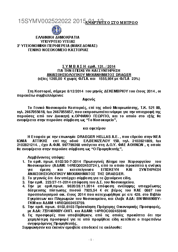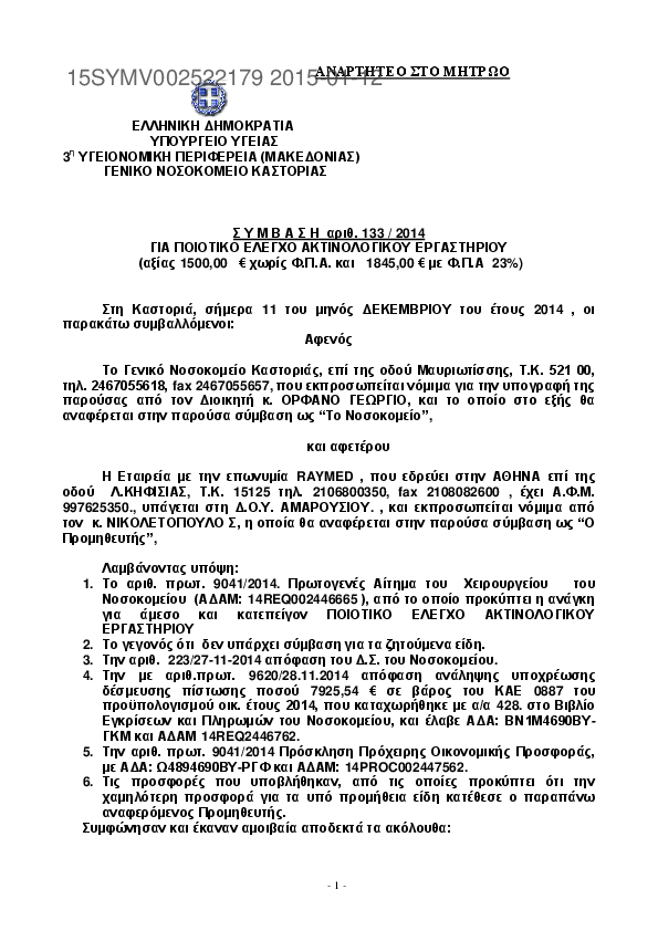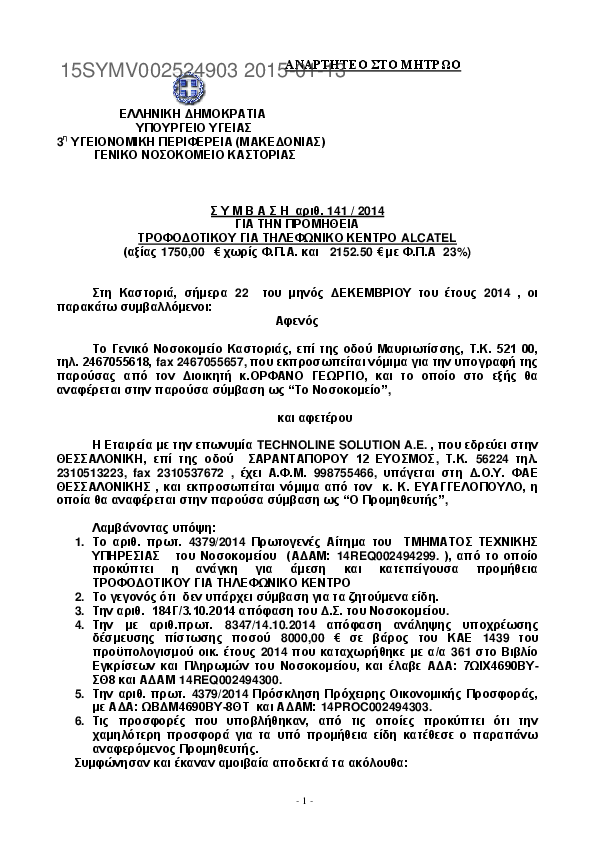 1. ΣΥΜΒΑΣΗ ΑΝΑΘΕΣΗΣ ΥΠΗΡ. ΕΛΕΓΧΟΥ ΟΡΚΩΤΩΝ ΛΟΓΙΣΤΩΝ ΓΙΑ ΤΗΝ ΔΙΑΧΕΙΡΙΣΤΙΚΗ ΧΡΗΣΗ 2014 ΤΟΥ Γ.Ν. ΚΑΣΤΟΡΙΑΣ