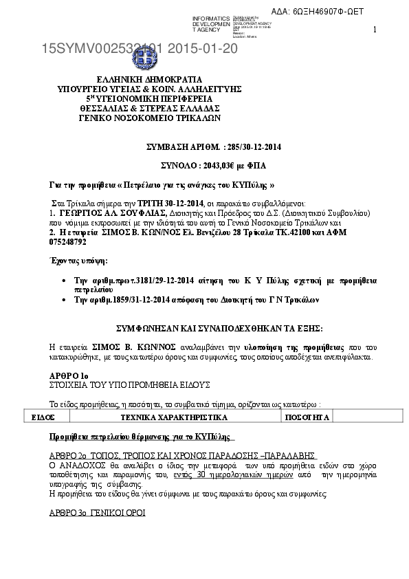 5. ΠΡΟΜΗΘΕΙΑ ΠΕΤΡΕΛΑΙΟΥ ΓΙΑ ΤΟ ΝΟΣΟΚΟΜΕΙΟ ΚΑΙ ΤΟΝ ΞΕΝΩΝΑ