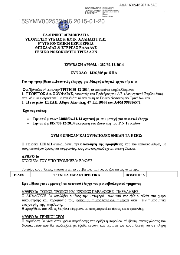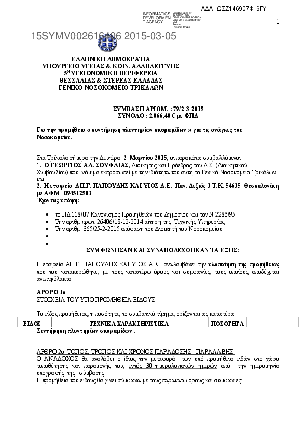 Αναζήτηση σε προκηρύξεις και συμβάσεις για: