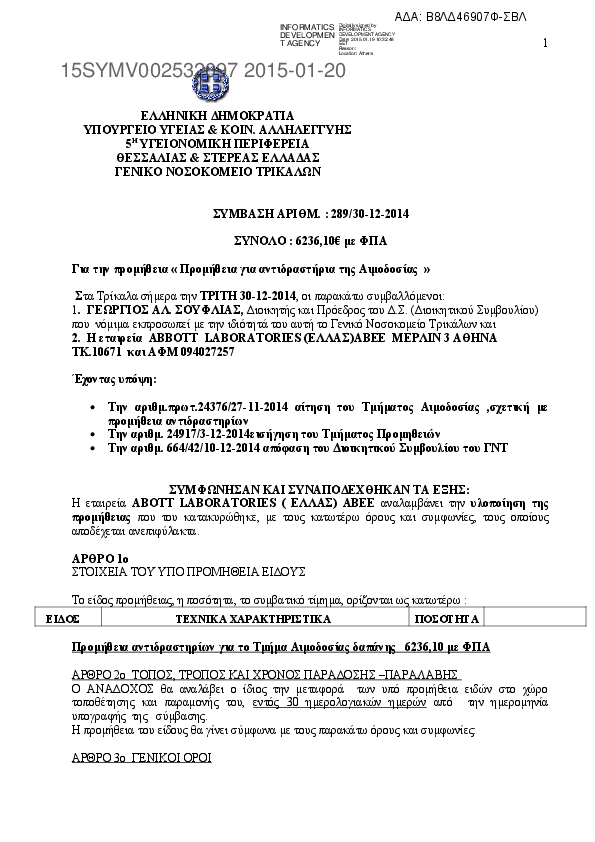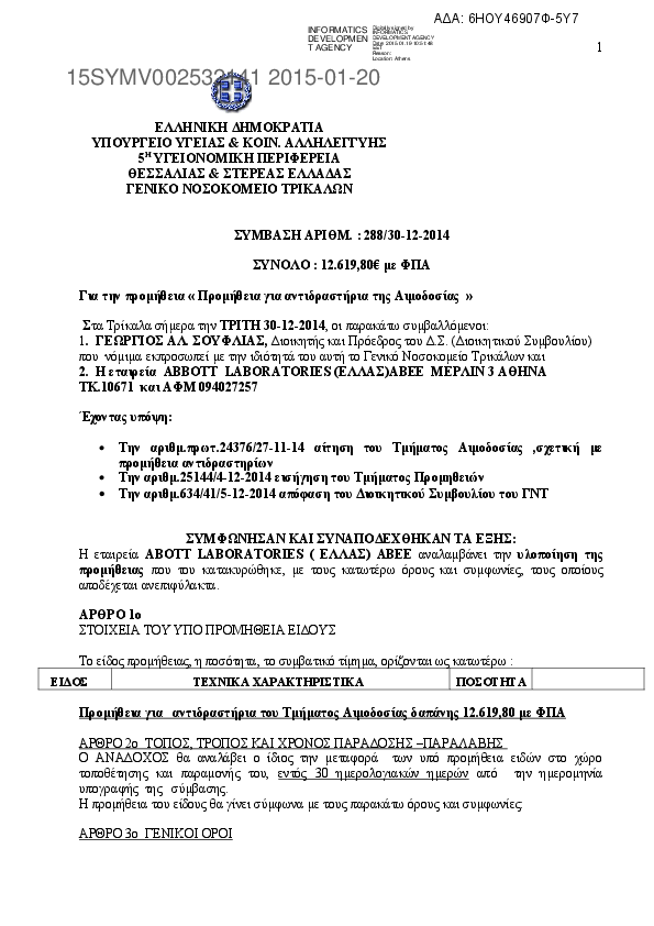 2. ΠΡΟΜΗΘΕΙΑ ΑΝΤΙΔΡΑΣΤΗΡΙΩΝ ΑΙΜΟΔΟΣΙΑΣ
