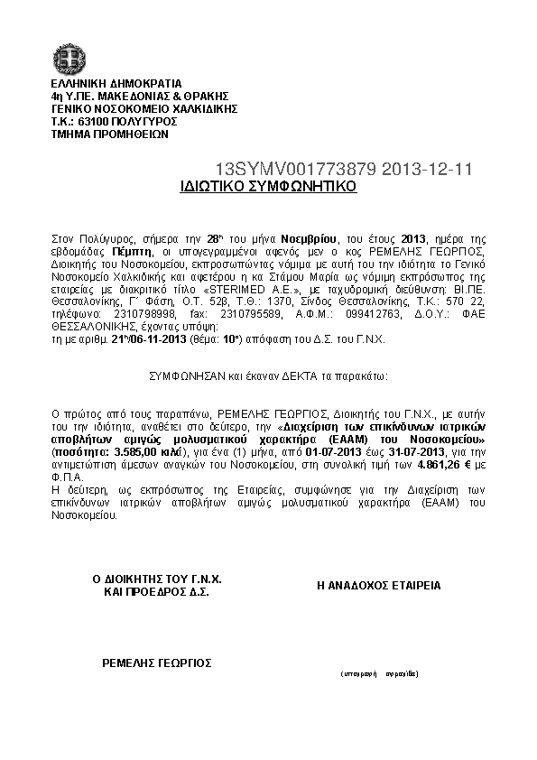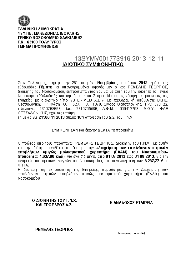 7. Διαχείριση των επικίνδυνων ιατρικών αποβλήτων αμιγώς μολυσματικού χαρακτήρα (ΕΑΑΜ) του Νοσοκομείου