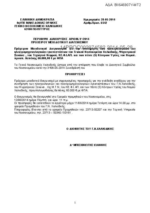 10. Ετήσια συντήρηση ηλεκτρολογικών και ηλεκτρομηχανολογικών εγκαταστάσεων του Γ.Ν. Χαλκιδικής, του Ψυχιατρικού Ξενώνα, της ΜΤΝ του ΚΕΦΙΑΠ και των πέντε Κέντρων Υγείας του Γ.Ν. Χαλκιδικής