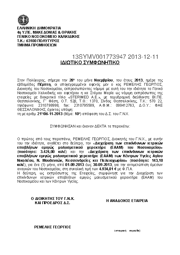 9. ΙΔΙΩΤΙΚΟ ΣΥΜΦΩΝΗΤΙΚΟ ΓΙΑ ΠΡΟΜΗΘΕΙΑ ΑΜΟΛΥΒΔΗΣ ΒΕΝΖΙΝΗΣ ΓΙΑ ΑΣΘΕΝΟΦΟΡΟ ΚΥΚ