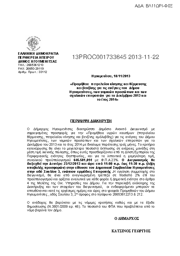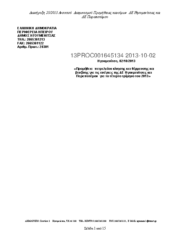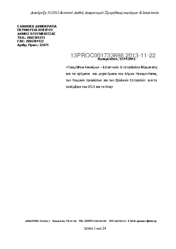 Αναζήτηση σε προκηρύξεις και συμβάσεις για: