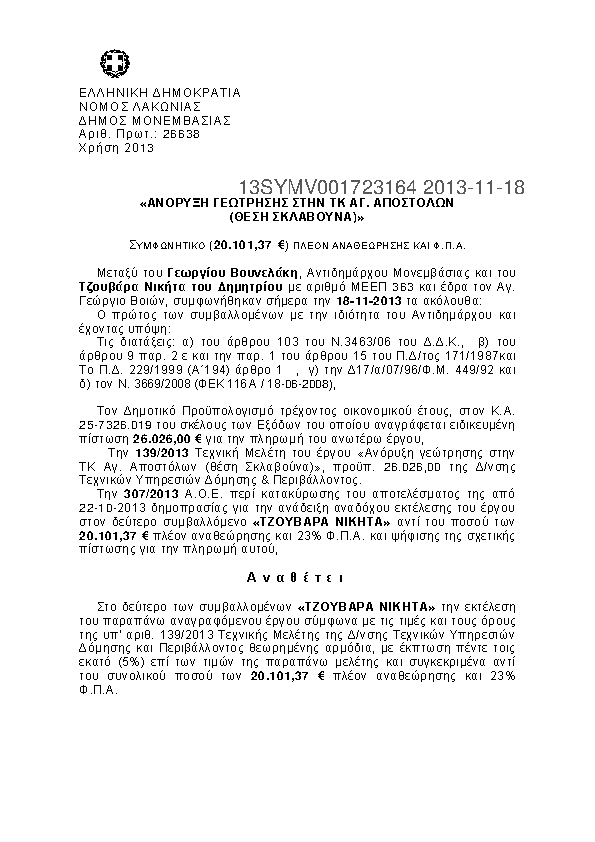 8. ΑΝΟΡΥΞΗ ΓΕΩΤΡΗΣΗΣ ΣΤΗΝ ΤΚ ΑΓ. ΑΠΟΣΤΟΛΩΝ (ΘΕΣΗ ΣΚΛΑΒΟΥΝΑ)
