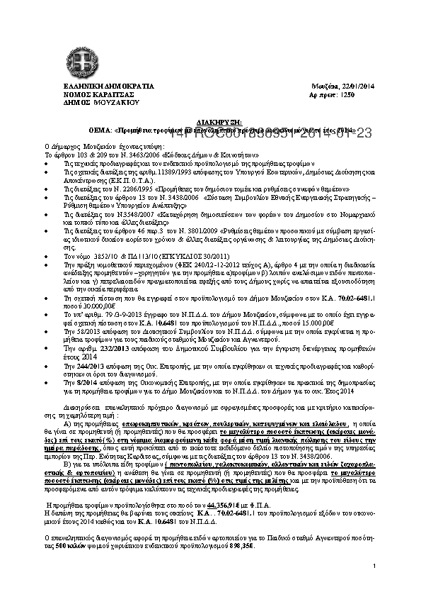9. ΕΠΑΝΑΛΗΠΤΙΚΗ ΔΙΑΚΗΡΥΞΗ ΠΡΟΜΗΘΕΙΑΣ ΤΡΟΦΙΜΩΝ ΕΤΟΥΣ 2014