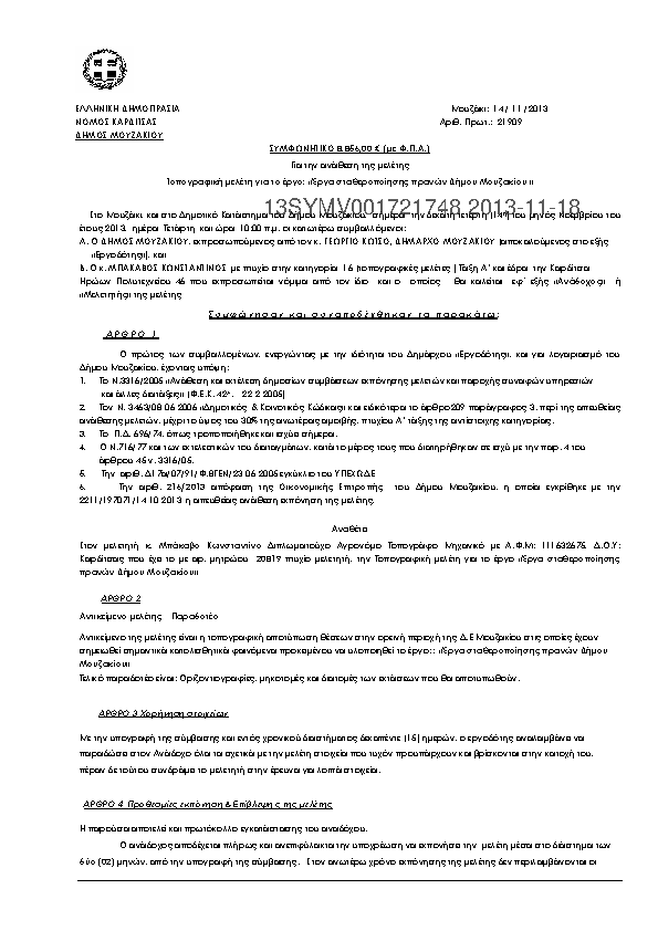 3. Τοπογραφική μελέτη για το έργο: «Έργα σταθεροποίησης πρανών Δήμου Μουζακίου »