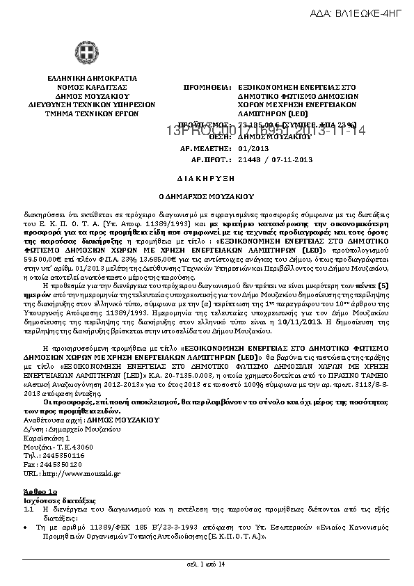 Αναζήτηση σε προκηρύξεις και συμβάσεις για:
