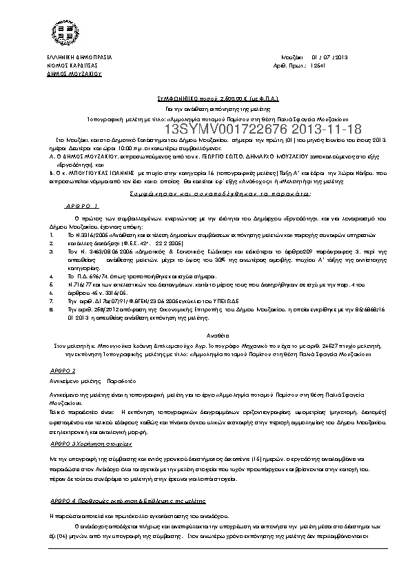 4. Τοπογραφική μελέτη για το έργο: «Αμμοληψία ποταμού Παμίσου στη θέση παλιά σφαγεία Μουζακίου »
