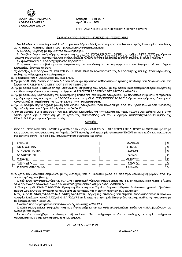8. Κατασκευή αποχετευτικού δικτύου Δήμου