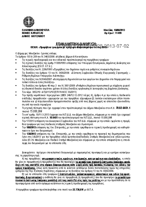 5. ΕΠΑΝΑΛΗΠΤΙΚΗ ΔΙΑΚΗΡΥΞΗ ΠΡΟΜΗΘΕΙΑΣ ΤΡΟΦΙΜΩΝ