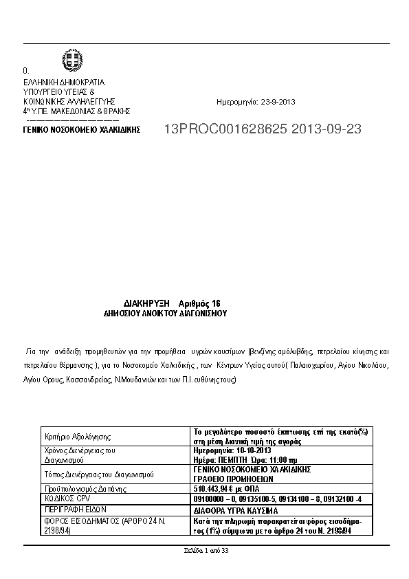 6. επαναπροκήρυξη προμήθειας καυσίμων για το Γ.Ν.Χ.